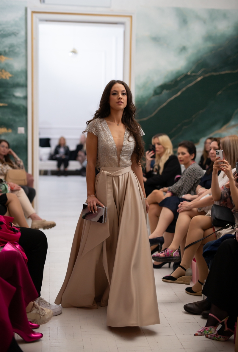 Valahogy mindenkit meghatottak a megnyitó szavak. Mindig öröm visszatekinteni egy alkotó, művész életútjának kezdetére. És talán már önmagában az is elbűvölő volt, ahogyan elképzeltük Brigit, aki tízenévesen álmodozik arról, hogy divattervezővé válik. Aztán leül a varrógép elé, anyagot ragad, suhannak az öltések az ujjai alatt, és a kislány már a saját maga szabda-varrta ruhát viseli néhány nap elteltével. És pillantunk kettőt, hármat, 2018-at írunk, megalapítja a saját menyasszonyi ruhamárkáját. Amelyben – ahogyan Brigi megfogalmazta – minden ruha egy történet kezdete, ahol a szálak az öröm, a szerelem és az örök hűség hídján fonódnak össze. Minden varrás egy új fejezetet ír azon boldog pároknak, akik úgy döntöttek, hogy egy életre szóló köteléket alkotnak.